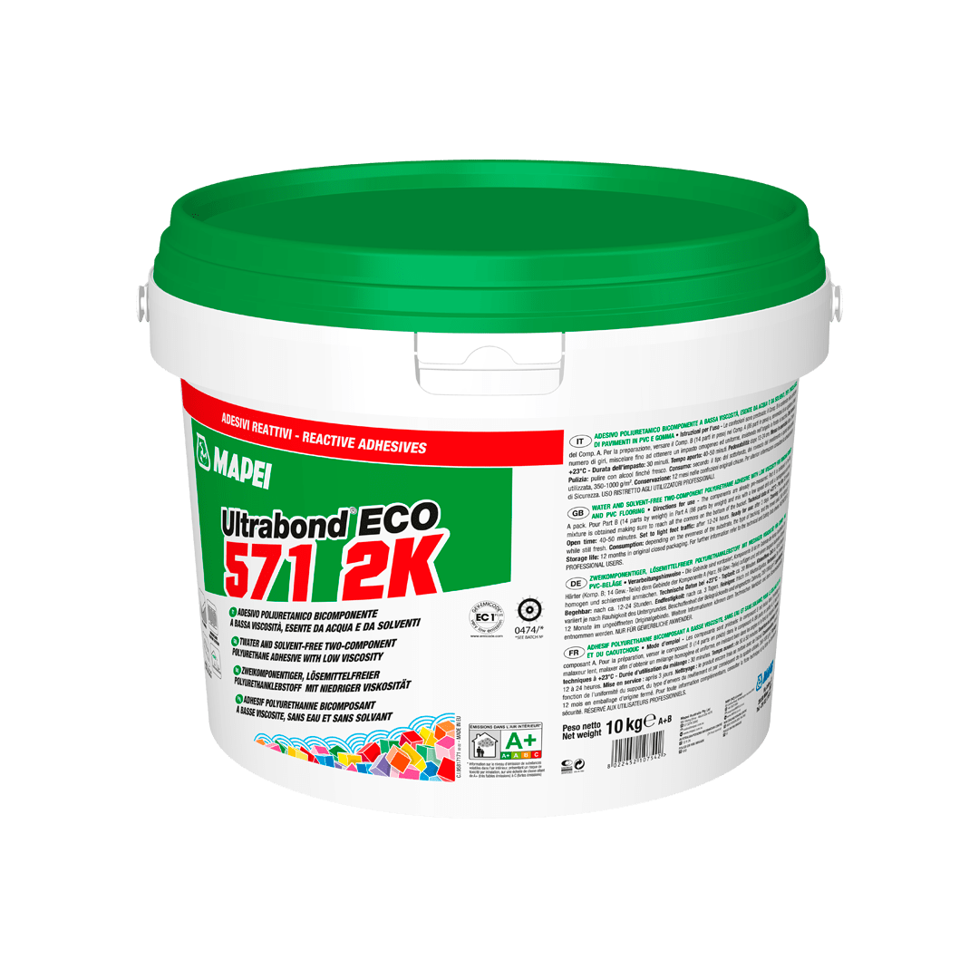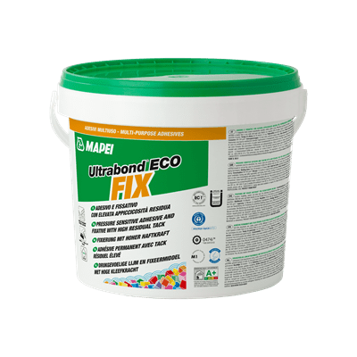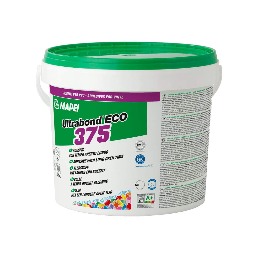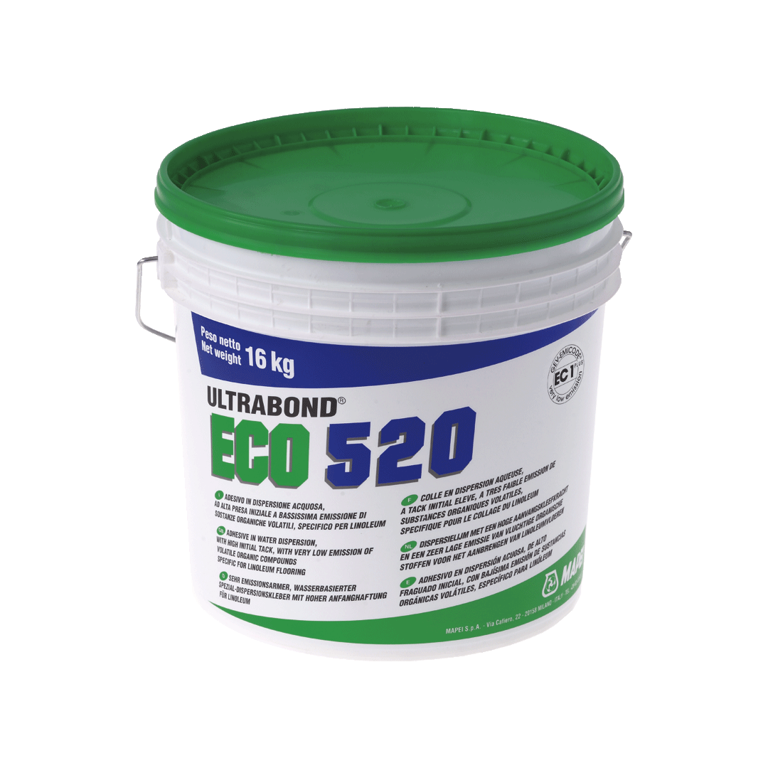 Multi-purpose, acrylic adhesive in water dispersion with a long open time and very low emission level of volatile organic compounds (VOC), for laying rubber, PVC, vinyl, polyolephinic, linoleum and carpet flooring.