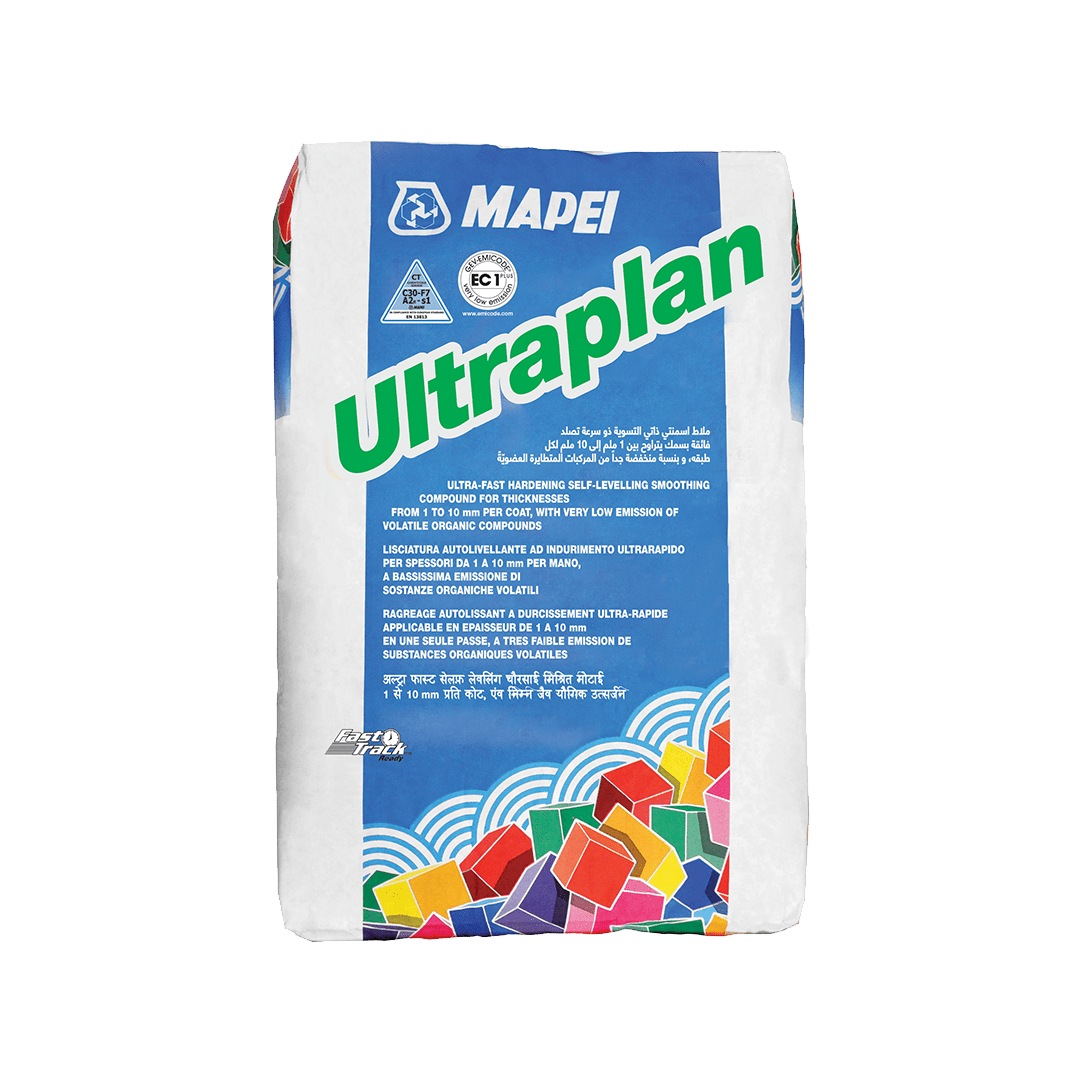 Self-levelling, ultra quick-hardening smoothing compound for thicknesses from 1 to 10 mm, with a very low emission level of volatile organic compounds (VOC).