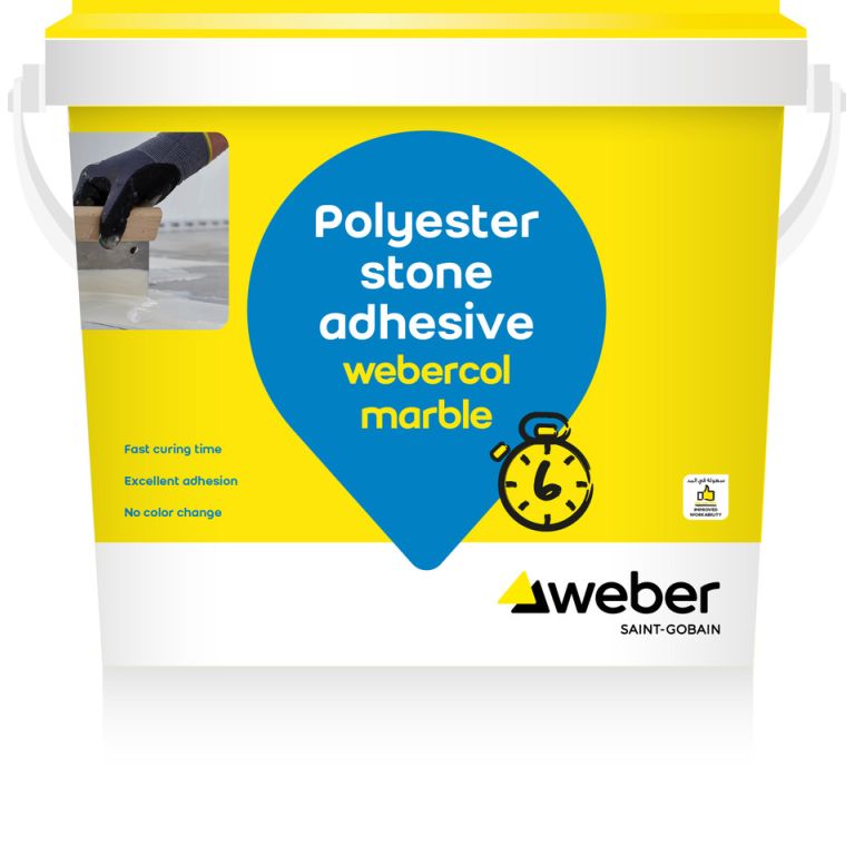 webercol marble is a two component marble and natural stone adhesive based on polyester resin. Used for gluing, repairing and filling up porous surfaces of the marble, travertine, natural stones, ceramic, brick and similar materials. Can be used both vertical and horizontal application.
