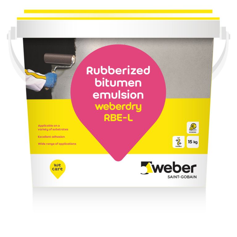 All surfaces to which weberdry RBE-L is applied must be sound, stable with an even finish and free from dirt, dust, loose debris, grease, cracks and holes must be repaired before application of weberdry RBE-L. If the surface is dusty and/or very porous, it should be primed with a coat of weberdry RBE-L diluted with 50% of cool, clean water and allowed to dry before proceeding It is recommended that two or more coats must be applied to ensure a durable finish.