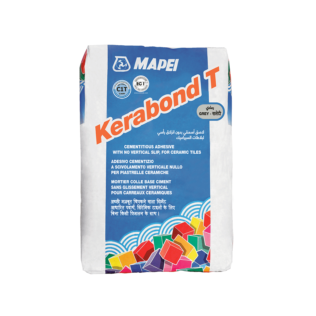Cementitious adhesive with no vertical slip for ceramic tiles.